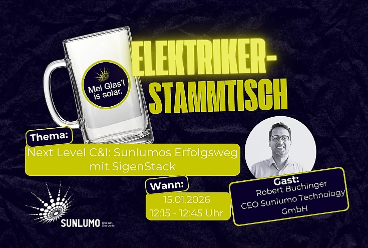 Die zweite Staffel unseres Stammtisches startet mit dem spannenden Thema C&I! Wir klären was C&I ist, warum dieser Bereich für Sunlumo wichtig ist und welche Anwendungsfälle im Vordergrund stehen. Außerdem werden wir klören welche Vorteile der SigenStack für C&I Kunden bietet und wie es um die Themen EMS und Wirtschaftlichkeit für C&I Kunden steht.